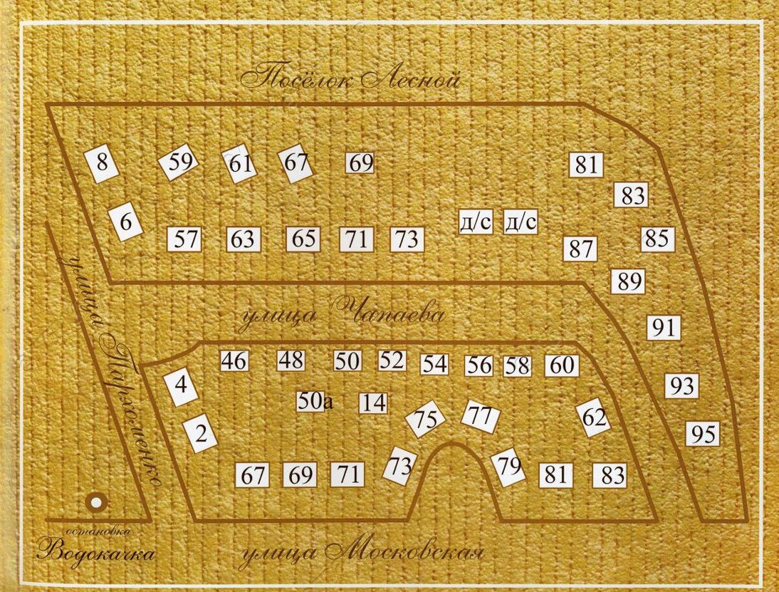 В поселке были три улицы. Две из них получили названия в честь героев Гражданской войны: с востока на запад шла улица Пархоменко, с севера на юг — улица Чапаева. Третью улицу, которая шла в сторону станции Крюково, назвали Московской. Сам поселок, расположенный в березовой роще, получил название Лесной.