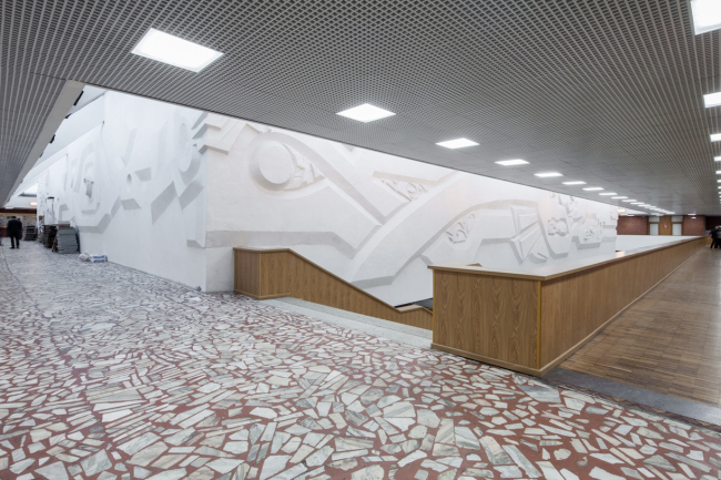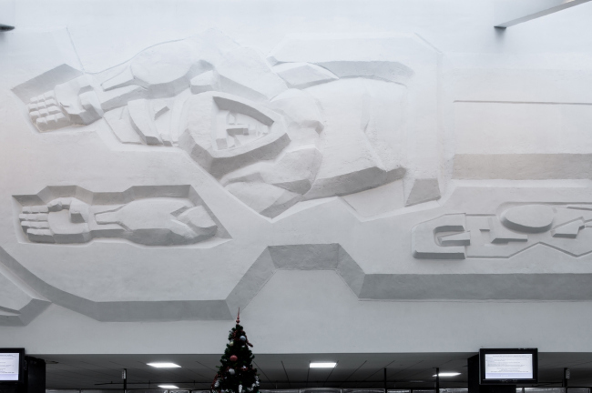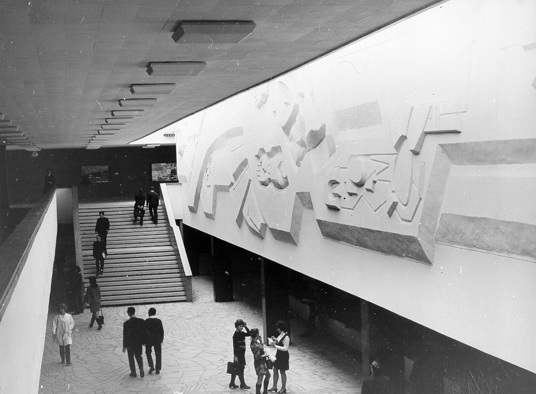 Но в ту пору в прессе упоминаний о мастере старались избегать: «…архитекторы Ф. Новиков и Г. Саевич создали все условия для подлинного синтеза, задумав с самого начала большой скульптурный рельеф, без которого здание не было бы завершенным. Он точно вписывается в архитектурное пространство и организует его. Композиция занимает четыре стены, она не повторяется и в разных ритмах развивает идею героики труда ученых и развития советской науки».