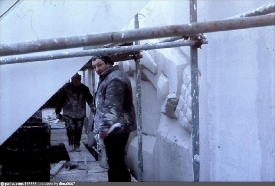 Елена Елагина вспоминала: «…Началась работа. Я не помню точно, в какое время года это случилось, скорее всего, осенью, потому что шел дождь, переходящий в мокрый снег. Помещение, в котором мы работали на лесах, было очень сложной формы — библиотека (большой куб), на стенах которой должны быть рельефы, находилась внутри здания, а между стенами по периметру всей библиотеки планировалась стеклянная крыша, которую пока не смонтировали. Так что мы работали на лесах под открытым небом — … под дождем и снегом с гипсом, за водой для которого приходилось бегать с ведром во двор… Особенно тяжело было зимой…идешь за водой, а ведро примерзает к руке… Целый год мы жили в Зеленограде и каждый день ходили на работу на стройку...»