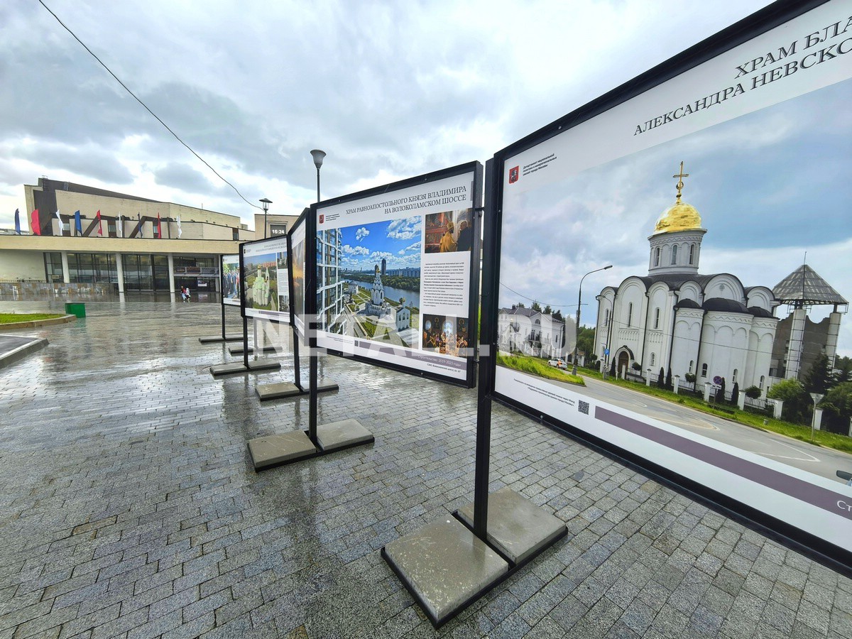 Несколько десятков стендов с фотографиями и текстовыми материалами православной тематики были установлены в пешеходной зоне между префектурой Зеленограда и ДК в конце августа, сообщил корреспондент Инфопортала. Большая часть выставки посвящена программе строительства в Москве новых православных храмов. В экспозиции можно увидеть и фото одной из зеленоградских церквей — храма Александра Невского, расположенного у 14-го микрорайона. Также на выставке представлен снимок патриарха Кирилла, сделанный 14 июня 2012 года, когда он на освящение закладного камня на месте этого храма.
