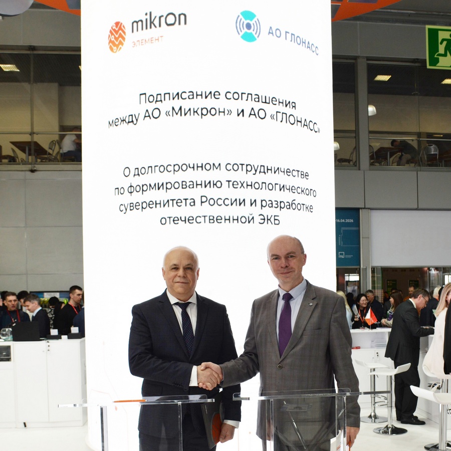 Как сообщает пресс-служба «Микрона», соглашение было подписано советником генерального директора АО «ГЛОНАСС» Игорем Чурсиным и заместителем генерального директора по развитию бизнеса АО «Микрон» Денисом Вараксиным на выставке ExpoElectronica 2025, которая проходит с 15 по 17 апреля в МВЦ «Крокус Экспо».
