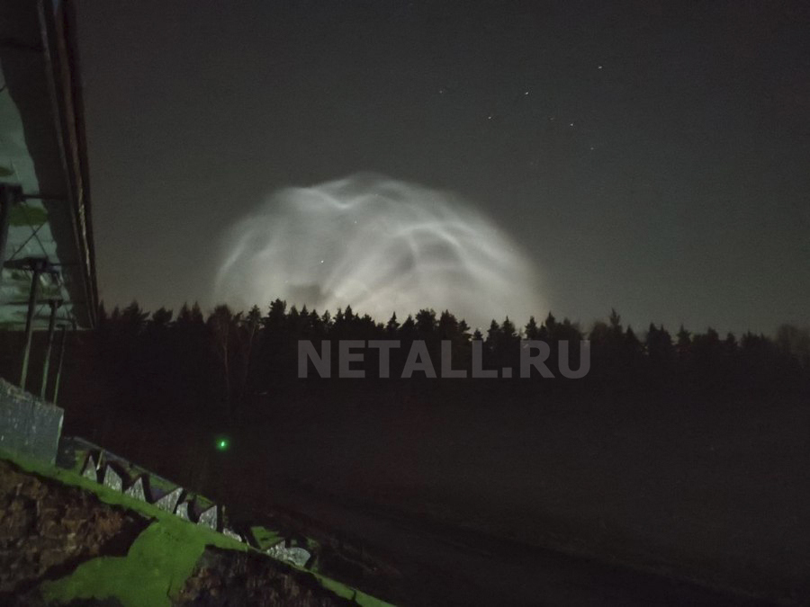 Фотографии необычного явления в ночном небе в пятницу, 17 апреля, около 2:30 сделал со стадиона «Элион» один из читателей Инфопортала. В тот же день снимки были опубликованы на страницах нашего издания в соцсетях. «Над лесом появилось нечто похожее на облако, которое крайне быстро распространилось из одной точки по сфере и вскоре растворилось», — описал увиденное автор фотографий. Отметим, что снимки были сделаны в направлении почти строго на север.
