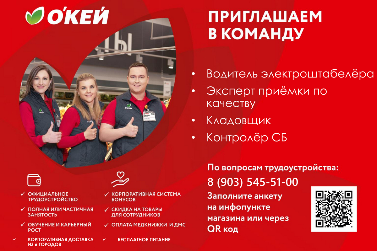 В распределительном центре сети розничных магазинов «О'кей» открыто несколько вакансий. Зарплаты стали выше!