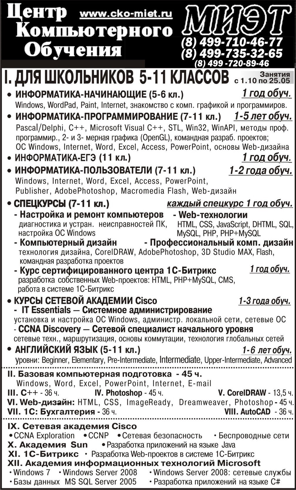 Информация предоставлена Центром Компьютерного Обучения-МИЭТ.