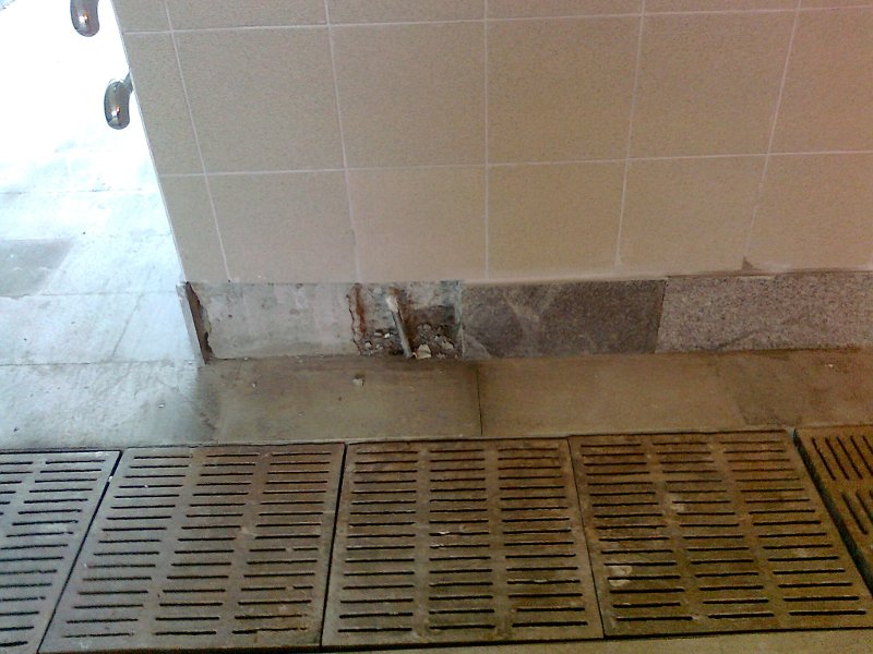У подземного перехода около 1004 корпуса здоровенный кусок из нескольких плиток недавно отвалился плиток 12 вылетело, со стороны которая ближе к 9 мкр.
