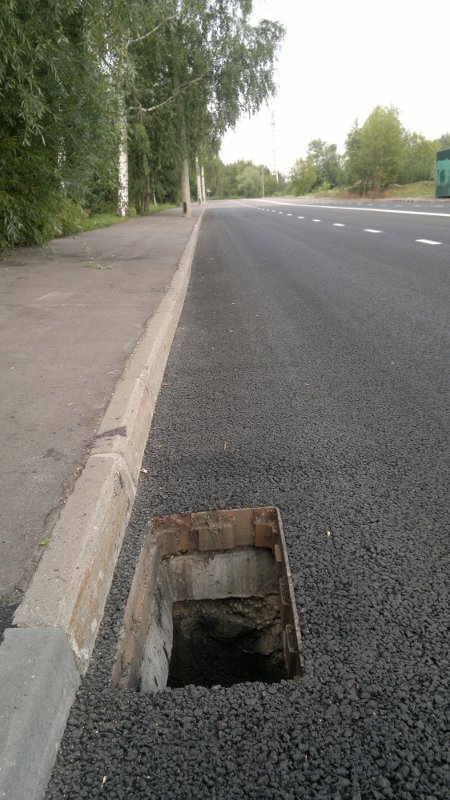 Асфальт свеженький, могли и дорожники забить положить решетку..