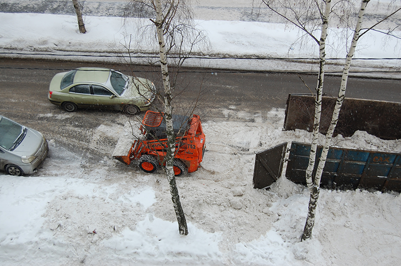 Сначала собирают снег вокруг дома в контейнер, потом контейнером перекрывают полдороги и создают пробку. А в итоге снег из контейнера выбрасывают с их территории на чужую, вместо того чтобы отвезти его на переработку.