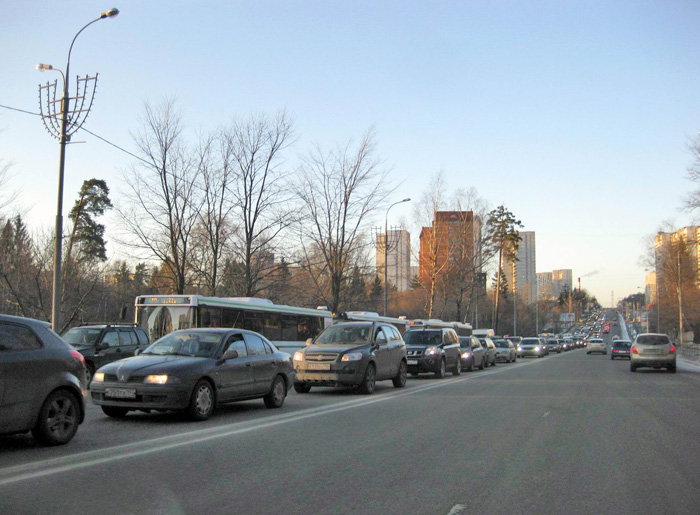 А вообще, вид на последней фотке можно наблюдать почти каждый будний день и без всякого ДТП. Частенько начинается от корп. 1011 (ост. Октябрьская), а вот от АЛМИ - считанные разы. <ABToJIeDu>, 09.04.2013 13:56