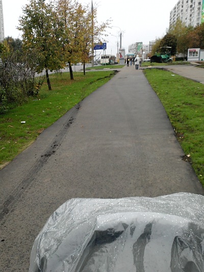 Автомобиль с надписью «Все лучшее мне» на только что заасфальтированной к тому моменту пешеходной дорожке у корпуса 1501. Фото сделал Ewig 24 сентября.