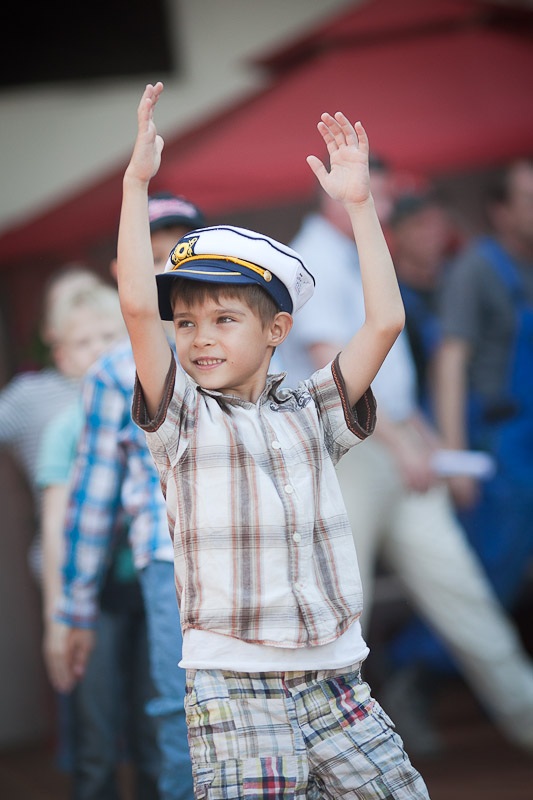 Сцена с декламированием названий и девизов повторяется еще два раза: вслед за «Тусовкой» свои краткие «визитки» представляют отряды «Rainbow» и «Капельки». По отрядам ребята делятся по возрастному принципу. Вообще, — Если родители уверены, что их ребенку будет здесь интересно, мы можем взять и 12-летнего ребенка, в старшем отряде сейчас как раз есть такая девочка, — делится со мной Марина Троицкая, когда формальная часть линейки подходит к концу, а предводители отрядов отправляются поднимать флаг лагеря. — Ну что, каши мало ели? — подбадривает она ребят, когда красно-зеленый стяг с логотипом «GreenCity» повисает на середине флагштока. Собравшись с силами, малыши все-таки дотягивают флаг до верхушки. Возлюби спорт смолоду — Лагерь работает в будние дни с десяти до пяти часов, — рассказывает Марина Троицкая, пока детвора приступает к утренней зарядке под руководством инструктора по фитнесу. — Конечно, привести ребенка можно и раньше — вожатые отрядов приезжают на работу к девяти утра. Кроме того, специально на время работы летнего лагеря мы разработали предложение по покупке членской карты детского клуба: если приобрести такую карту для своего ребенка, после пяти часов он сможет посещать групповые занятия, проходящие уже вне рамок лагеря. Впрочем, и в самом лагере программа пребывания очень насыщенная. Помимо зарядки, обеда, полдника и тихого часа, ребята каждый день посещают бассейн, трижды в неделю их ждут мастер-классы по клубному танцу, черлидингу или ушу.