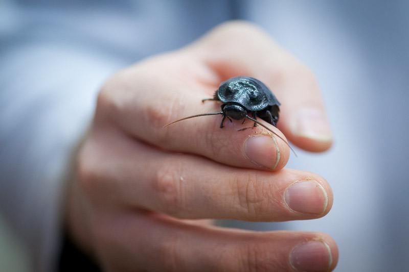 По рассказам коллег, Андрей Ермаков — человек творческий, поэтому животных он не только лечит, но и разводит. Стеллажи в его кабинете заставлены прозрачными коробками с латинскими надписями. В них обитают насекомые, земноводные и пресмыкающиеся, среди которых гекконы, ящерицы, скорпионы и мадагаскарские тараканы — далеко не самые экзотические экземпляры.