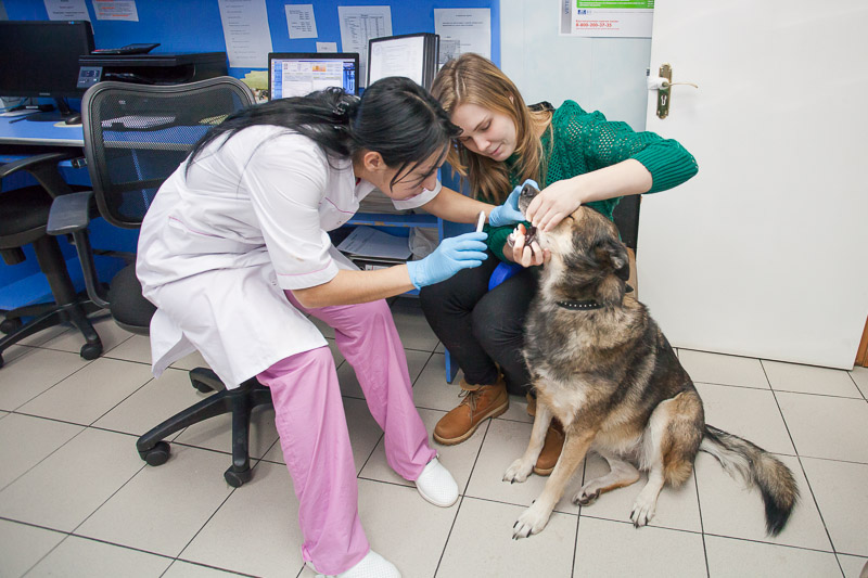 Зима для ветеринарных клиник — это, образно говоря, «низкий» сезон. Из-за плохой погоды прогулки становятся короче, поэтому животные проводят меньше времени на улице — соответственно уменьшается риск получить травму или подхватить заразу. Тем не менее, к концу экскурсии по клинике POLIVET, нам все же удалось встретить там четверолапого пациента, хозяйка которого обратилась за помощью «в режиме реального времени». Придя домой из школы, девушка обнаружила, что у любимой дворняги Лизы опух язык.