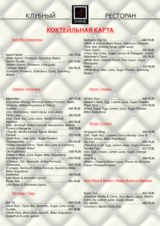На правах рекламы. Информация предоставлена администрацией ресторана Shine