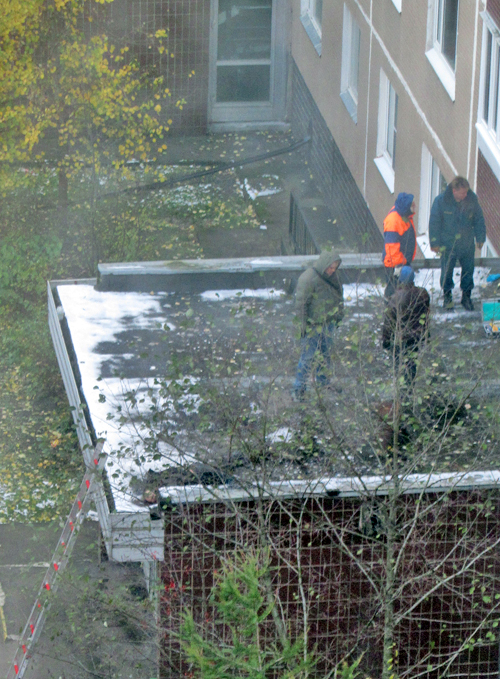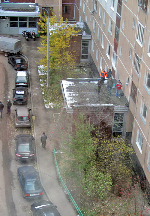 Спасатели и следователи на козырьке подъезда корпуса 1417. Фото участника проекта Инфопортала «Новости глазами очевидцев»