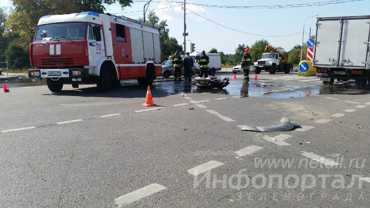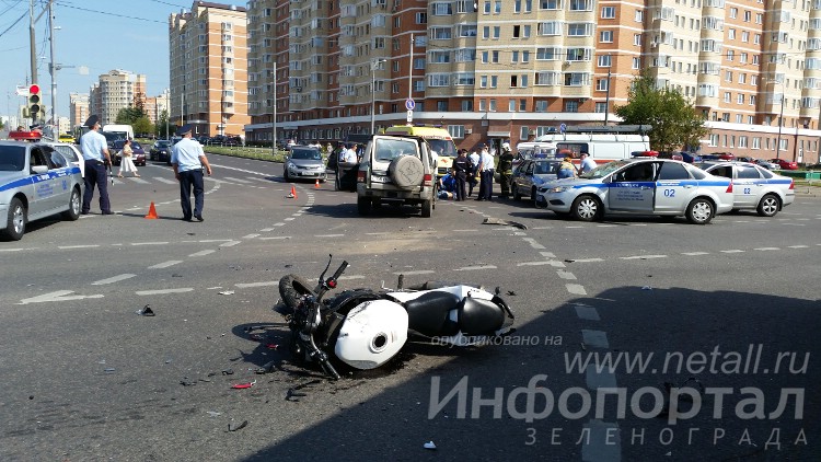 Инцидент произошел на пересечении Георгиевского проспекта (бывший проезд 657) и улицы Каменки в среду, 20 августа, около 11:30. Как рассказали Инфопорталу в зеленоградском батальоне ДПС, по предварительным данным, мотоцикл следовал по проспекту от Кутузовского шоссе в направлении улицы Андреевки и столкнулся со встречным автомобилем Hyundai Galloper, который совершал левый поворот на улицу Каменку. По словам первых свидетелей, опрошенных автоинспекторами на месте происшествия, мотоциклист выехал на перекресток на запрещающий сигнал светофора.