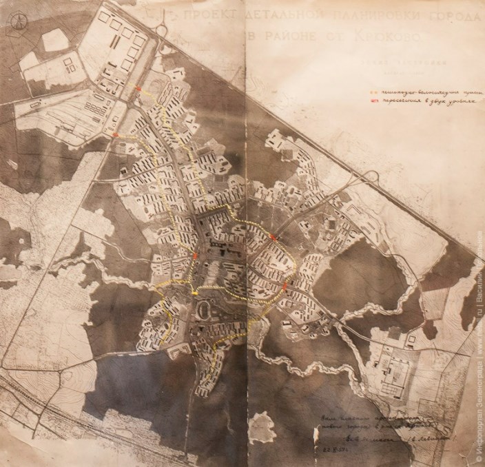 Большая часть территории города находится в радиусе 3 километров от основных точек притяжения: станции Крюково (фиолетовый цвет), МИЭТа и Южной промзоны (синий) и «школьного кластера» на Березовой аллее (желтый), а также других мест учебы и приложения труда. В качестве предпосылок называются компактность города — основные точки притяжения расположены в пределах 15-минутной поездки на велосипеде практически из любого района; довольно четкое разделение Зеленограда на функциональные зоны — жилые, промышленно-деловые, отдыха; существующие в немалых объемах зачатки велоинфраструктуры и серьезные наработки в области ее развития; наконец, имидж самого зеленого, экологичного и «велосипедированного» округа столицы. — Достоверной статистики на этот счет, конечно, нет, — говорит Рашид Валеев, руководитель компании 4Sport, — но я, что называется, в бизнесе, общаюсь с разными велоорганизациями и, сопоставляя доступные мне данные — о численности населения, об объемах продаж, понимаю: у нас действительно самая высокая в Москве плотность велосипедов. Зеленоград, экспериментальный и новаторский по своему происхождению, изначально задумывался как город, удобный для велосипедов. Еще на генплане 1959 года можно увидеть велосипедно-пешеходную зону, связывавшую все планировавшиеся на тот момент районы Зеленограда — с 1-го по 7-й — и имеющую ответвления к МИЭТу и Южной промзоне. — Обустроенная недавно