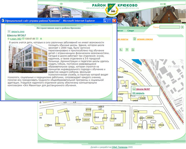 Для описания каждого размещенного объекта предусмотрено окно справочной информации, которое может быть вызвано непосредственно с карты. И наоборот,