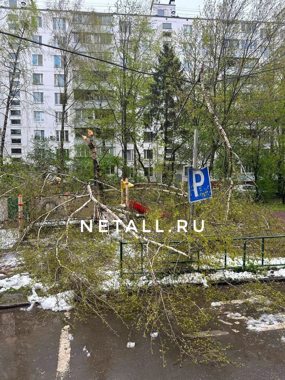 В результате снегопада, обрушившегося на Зеленоград в ночь на 2 мая, в городе были повалены как минимум десятки деревьев и повреждено множество припаркованных автомобилей, оказались временно перекрыты некоторые проезды. На Пятницком шоссе из-за последствий непогоды была открыта для движения только одна полоса из двух.