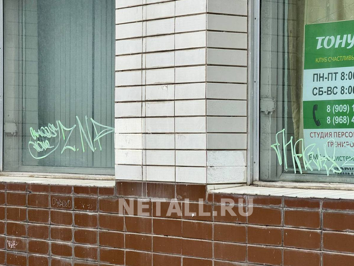 Два футбольных фаната разрисовали граффити автобусную остановку, киоск и окна фитнес-клуба на Центральном проспекте Зеленограда.