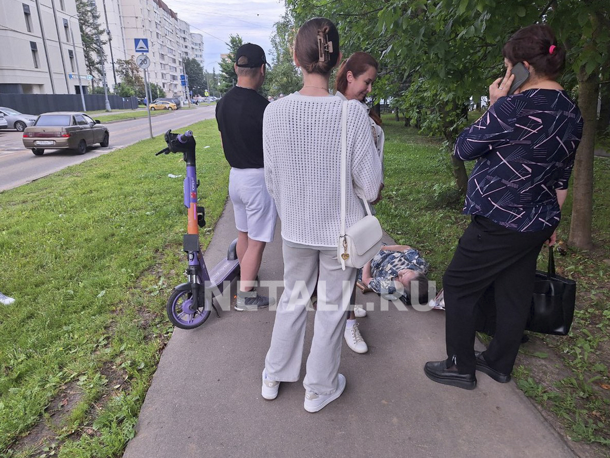 Инцидент произошел во вторник, 15 июля, около 19:20 на тротуаре улицы Летчика Полагушина напротив строящегося ЖК «Зеленоград Ривьера», сообщил корреспондент Инфопортала. Водитель электросамоката сбил пожилую женщину, видимо, при попытке ее объехать. Женщина упала на асфальт, прохожие сразу же вызвали скорую помощь, посоветовав пострадавшей не двигаться до ее приезда. Рабочий с соседней стройки принес куртку, чтобы укрыть пенсионерку, которая жаловалась на холод. Виновник столкновения ждал скорую и полицию тут же, не отходя от пострадавшей, полностью признавая свою вину.