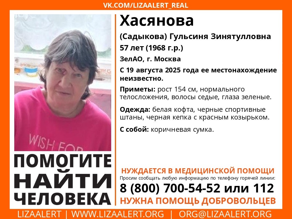 В Зеленограде распространяются ориентировки для поиска 57-летней Гульсини Хасяновой.