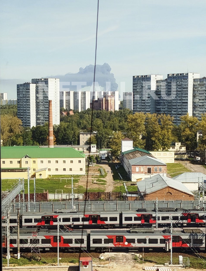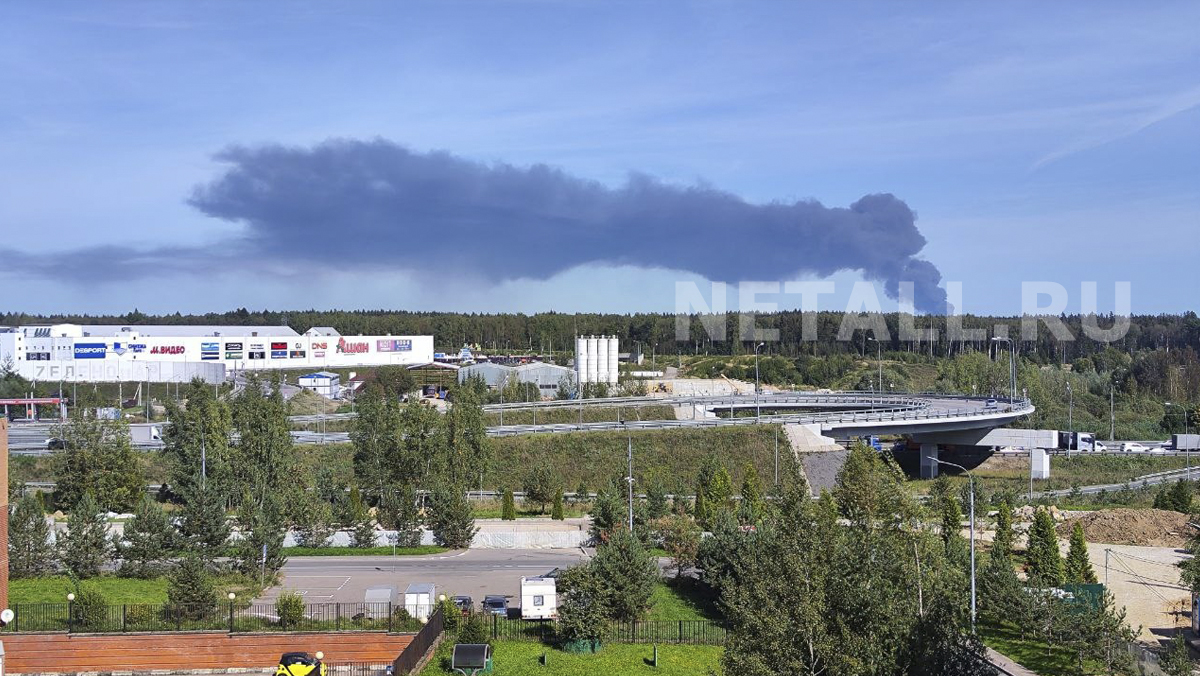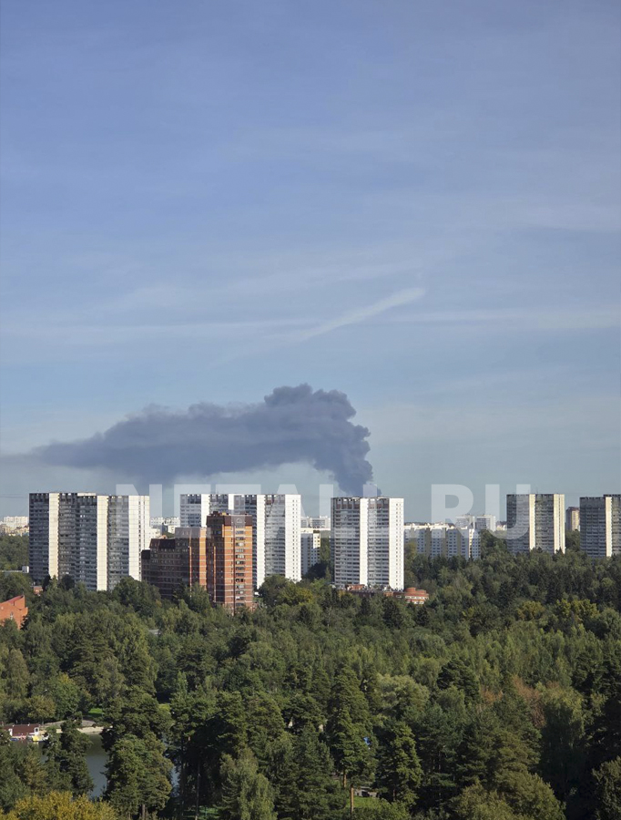 Близ станции Катуар в Дмитровском округе Подмосковья загорелся склад. Над местом пожара поднялся такой высокий столб дыма, что его видно из Зеленограда с расстояния в 25 километров.