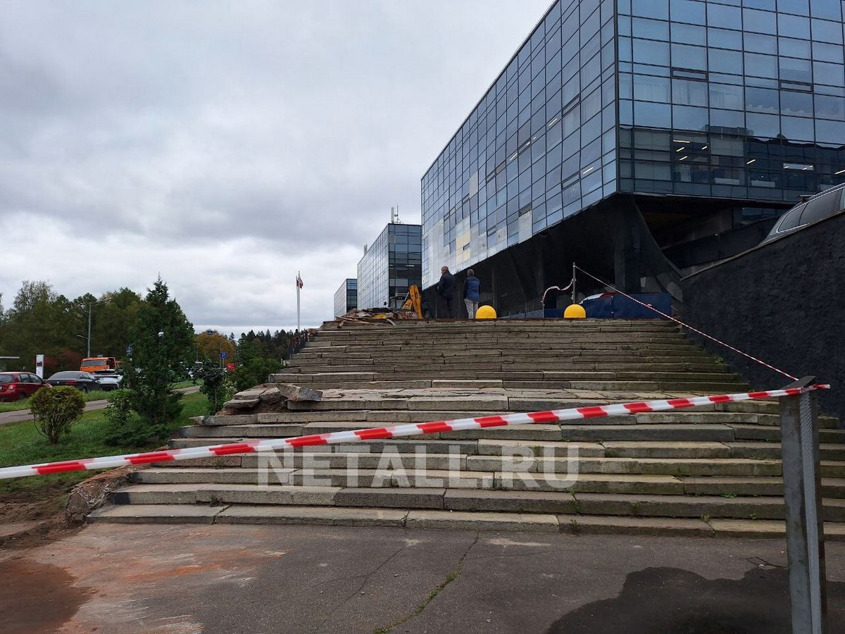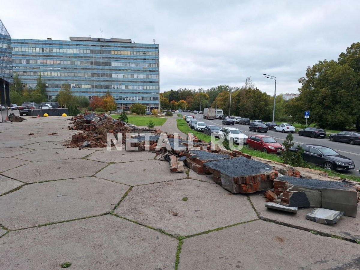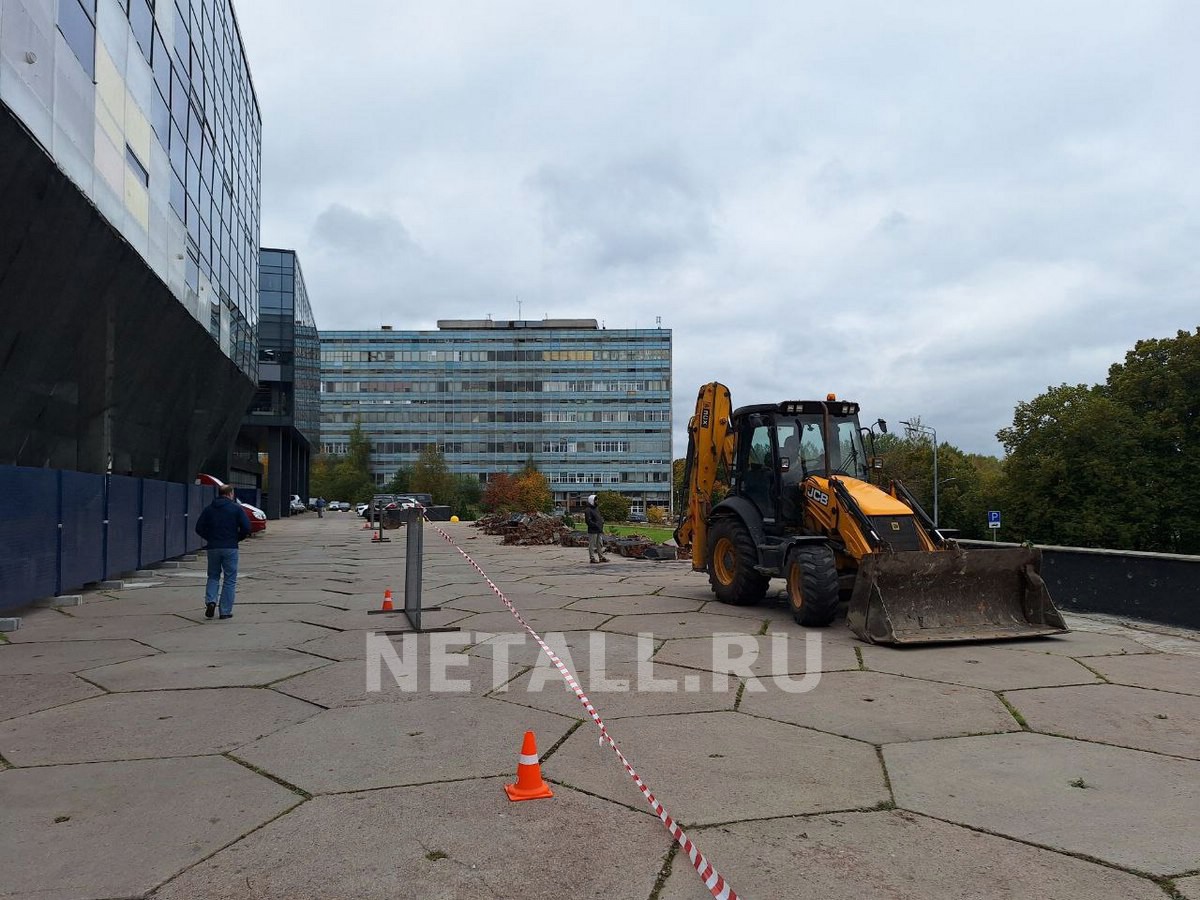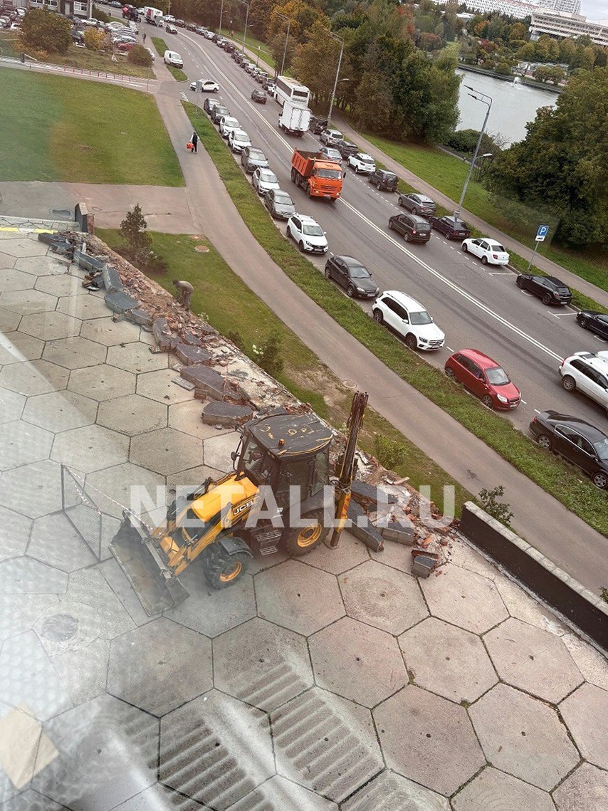 На проведение работ сегодня, 25 сентября, обратили внимание читатели и корреспонденты Инфопортала. На возвышающуюся над уровнем Озерной аллеи площадку у входа в технопарк прибыл трактор, который с помощью специального оборудования начал разрушать стенку парапета.