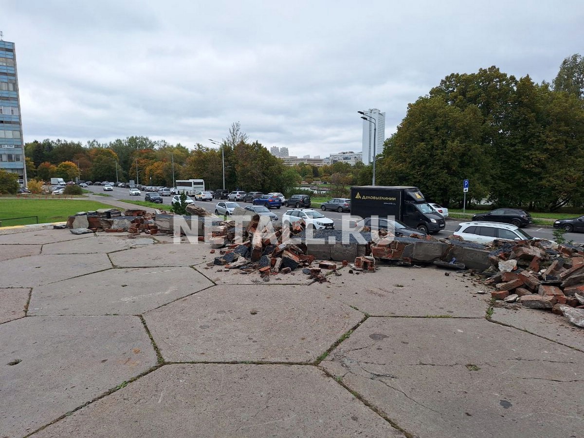 Рядом со зданием технопарка «Элма» в Зеленограде ремонтируют аварийный парапет.