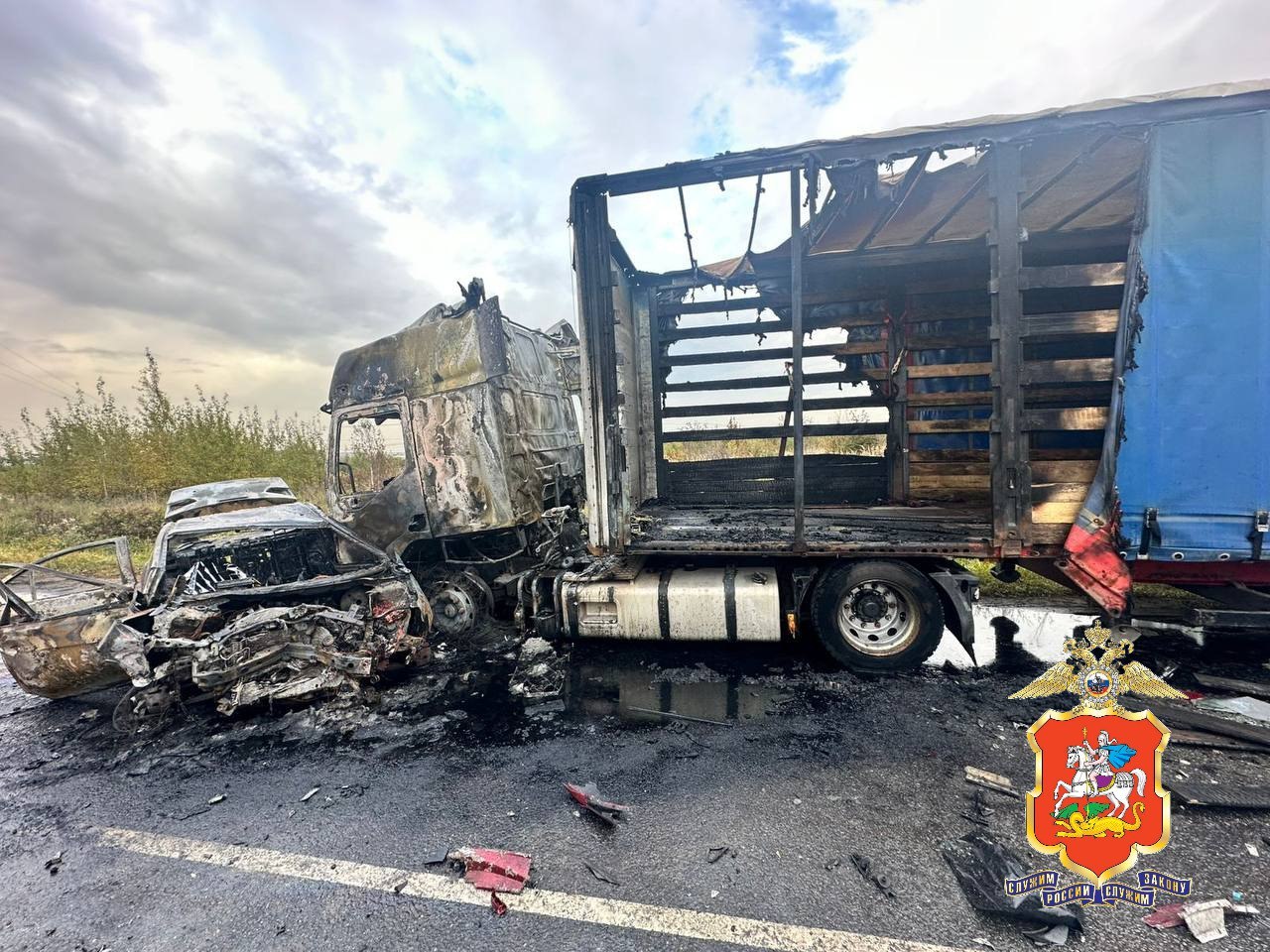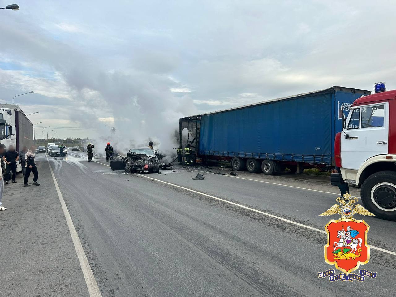 На кадрах с места происшествия видно, что после столкновения «Мицубиси» с фурой произошел пожар, охвативший всю легковушку и кабину грузовика. На место ДТП прибыли пожарные и несколько автомобилей скорой помощи, также прилетал медицинский вертолет.