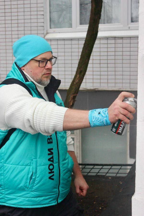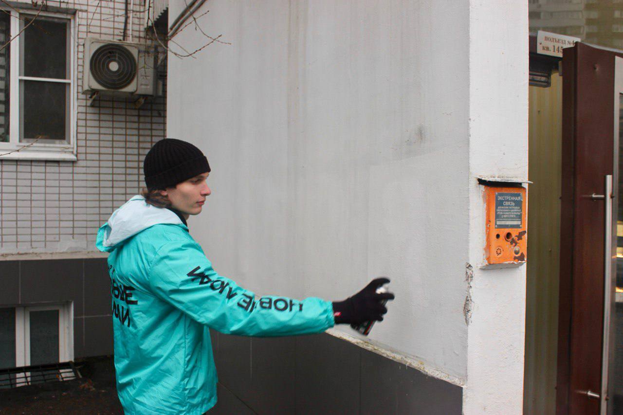 Максим Жарков закрашивает наркорекламу в Зеленограде. Фото партии «Новые люди»