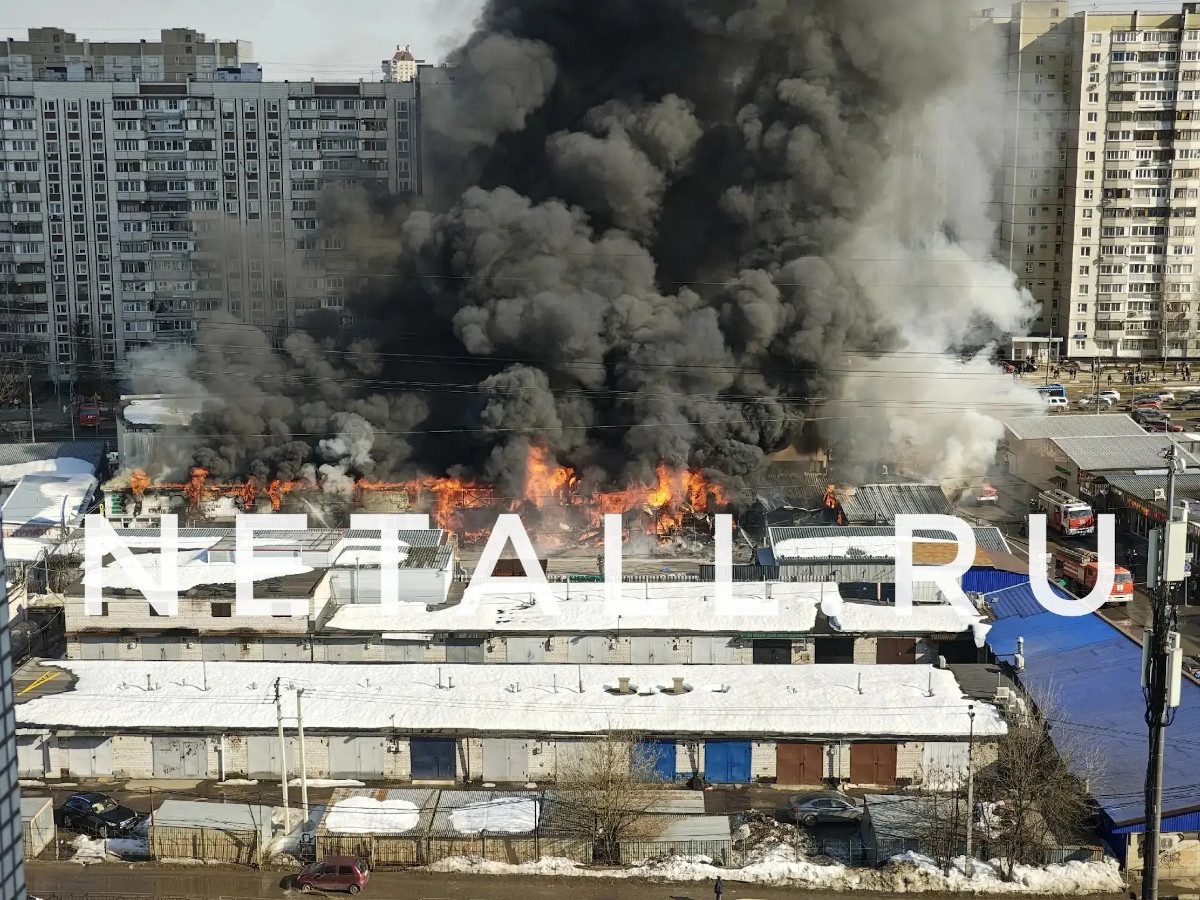 Пожар начался сегодня, 20 марта, примерно в 13:07, сообщил Инфопорталу очевидец. За 20 минут огонь распространился практически на всю территорию рынка.