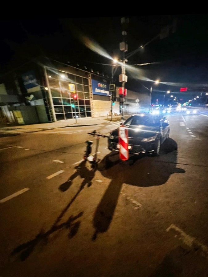 Отметим, что судя по кадрам с места ДТП поворот налево водитель электросамоката пытался выполнить из правого ряда.