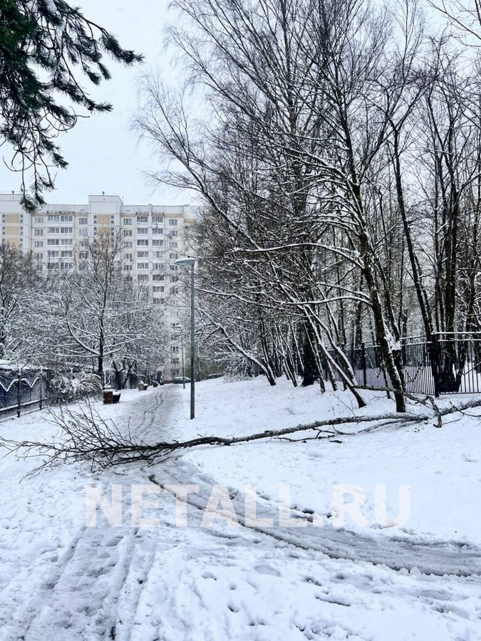 В Зеленограде из-за плохих погодных условий начался «древопад». По прогнозам синоптиков, мокрый снег не прекратится до конца дня. Горожан призывают соблюдать меры безопасности.