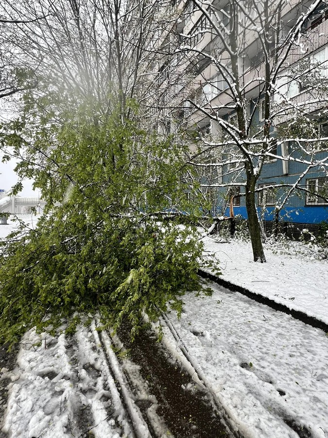 Сегодня ночью, 27 апреля, на столичный регион обрушился мощный снегопад, к утру в Зеленограде сформировался снежный покров. На этом фоне из разных микрорайонов города стали приходить сообщения об упавших деревьях. Так, у корпуса 1462 дерево упало на припаркованный рядом с домом автомобиль Nissan Note. Очевидцы сообщают также о падении деревьев в 6-м и 9-м микрорайонах.