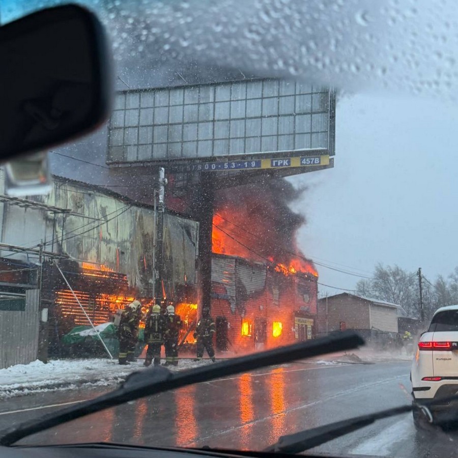 На Пятницком шоссе близ Зеленограда произошел пожар в нежилом здании. Его тушили 7 часов, а площадь составила 400 кв. метров.