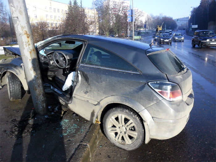 На Сосновой аллее автомобиль Opel Astra выехал за пределы проезжей части и столкнулся с фонарным столбом.