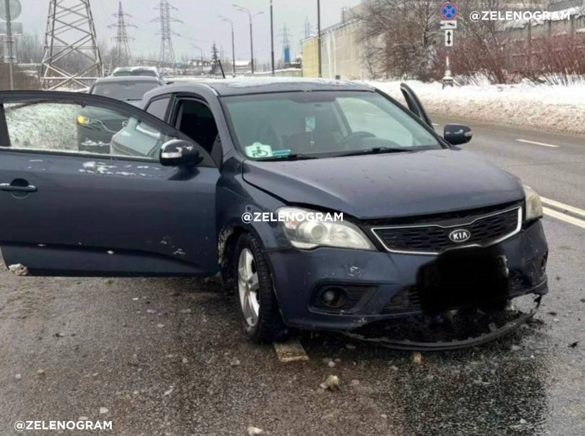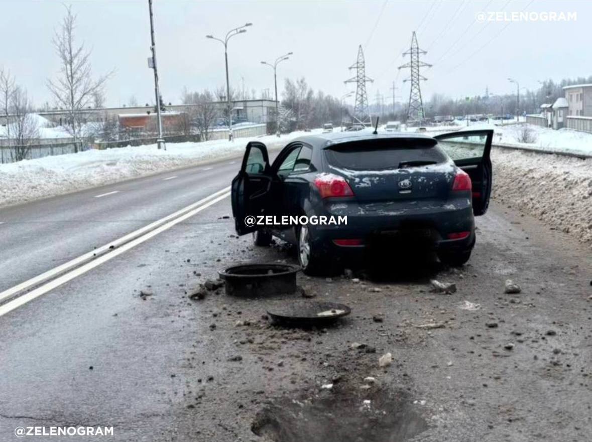 На проезде 707 в промзоне Малино поднявшаяся над проезжей частью крышка люка стала причиной ДТП с участием автомобиля Kia Ceed.