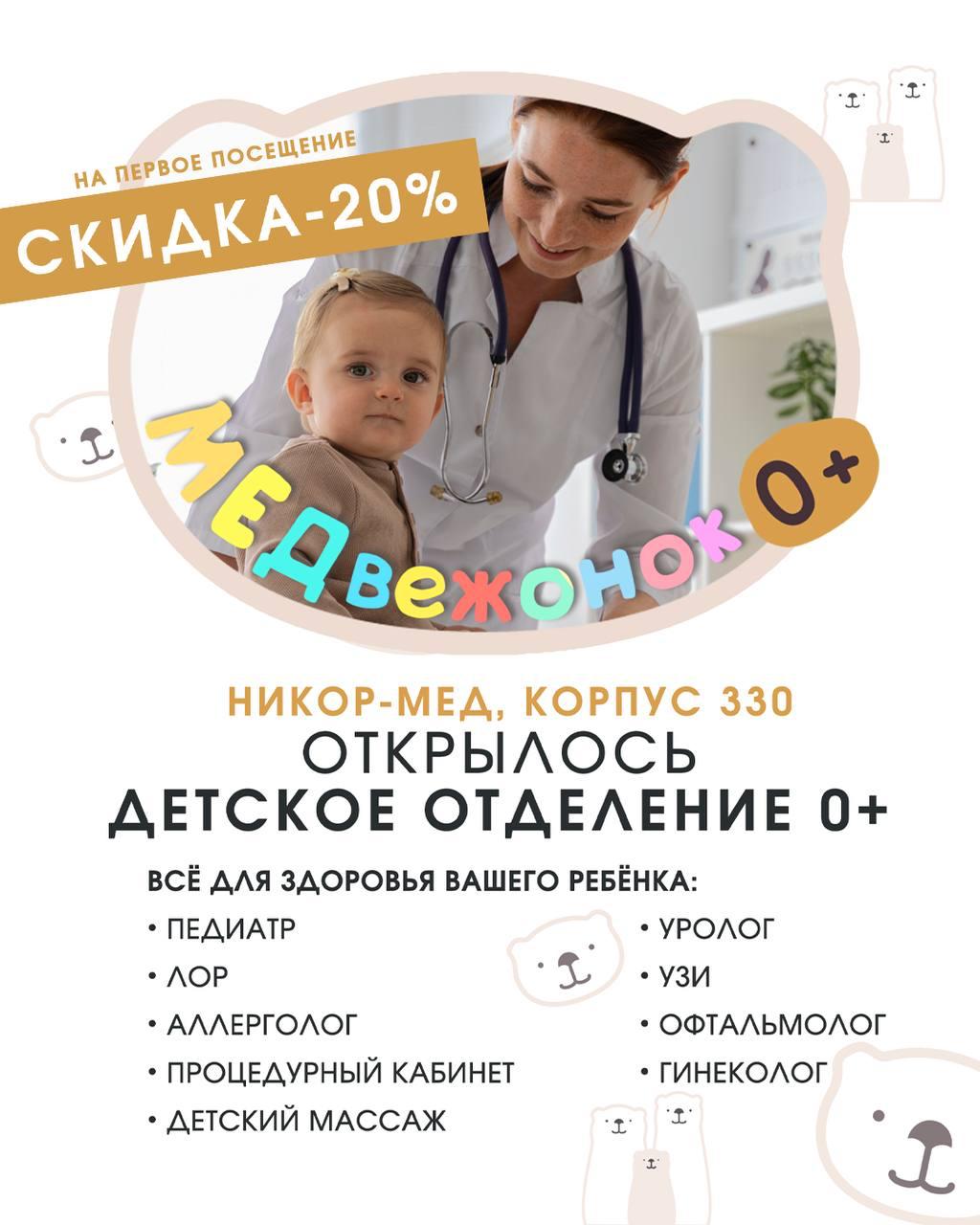 В «Никор-Мед» открылось детское отделение «МЕДвежонок» — скидка 20% на прием у педиатра до 30 декабря