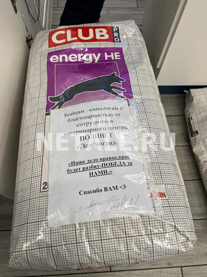 Ветеринары-волонтеры из зеленоградского центра Polivet собрали и отправили военным кинологам 100 кг корма для служебных собак, которые работают на разминировании в Курской области.