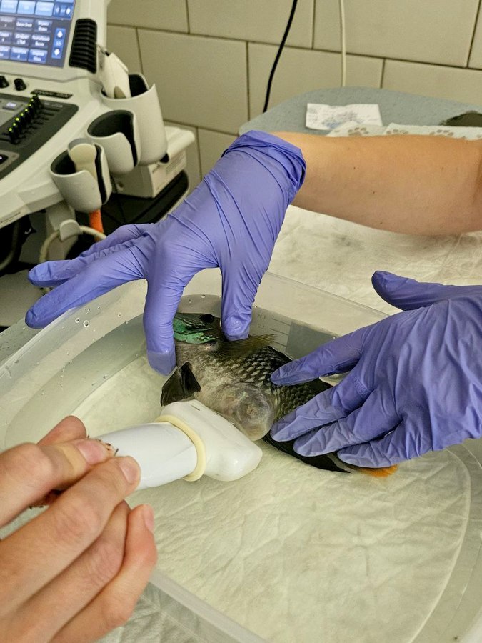 В ветеринарной лечебнице в Восточной промзоне провели УЗИ и пункцию рыбе. Ранее таких пациентов в клинике не было.