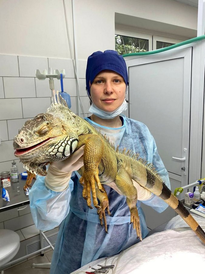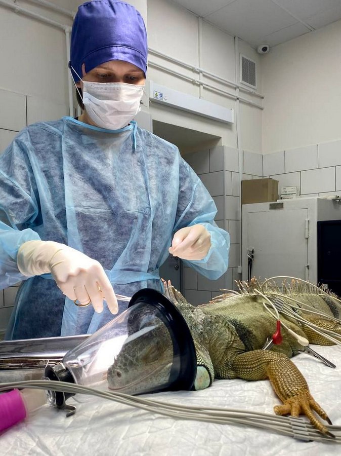 Срастить кости в данной ситуации было уже невозможно, и врачи приняли решение ампутировать поврежденные пальцы, чтобы избежать некроза. Игуану под газовым наркозом прооперировала хирург . «После ингаляционной анестезии питомцы просыпаются очень быстро, вот и Изумрудик, как только вышел из наркоза, продемонстрировал свою силу и мощь, пытаясь сбежать с операционного стола. Удержать такого дракона было совсем непросто», — рассказала ветеринар.