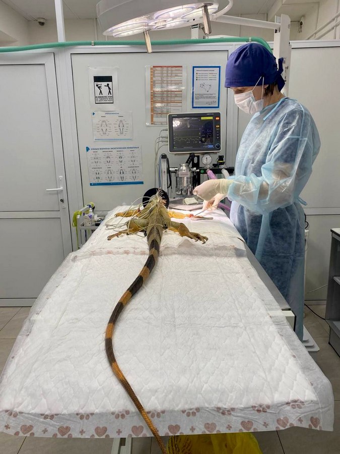 В государственной ветеринарной клинике в Восточной промзоне прооперировали экзотическую ящерицу, получившую травмы от столкновения с зеркалом.