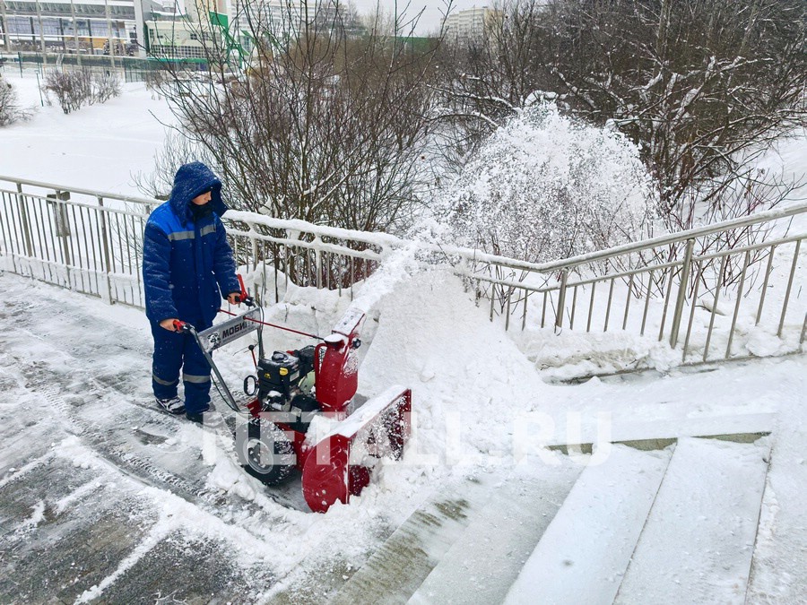 Очевидцем одной такой ситуации на Озерной аллее стал корреспондент Инфопортала. Там четыре человека с лопатами и двумя роторными снегоочистителями расчищали «до блеска» площадку у качелей на дамбе Большого городского пруда, в то время как тротуар вдоль Озерной аллеи в 80 метрах от этого места не чистили, кажется, с начала января. Проблема в том, что эти территории находятся на балансе разных организаций: за площадку на дамбе отвечает «Жилищник», а за тротуары — «Автомобильные дороги».