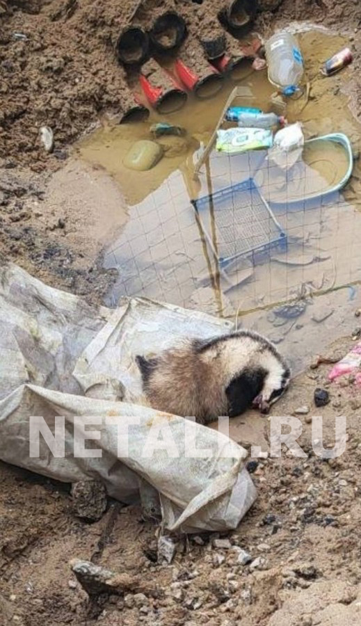 Находка была сделана у шестого подъезда дома «Флейта» днем в четверг, 16 апреля, рассказала Инфопорталу одна из местных жительниц, узнавшая о произошедшем от соседей. Мертвый барсук лежал рядом с трубами на дне огороженной ямы на месте проведения работ по перекладке коммуникаций.