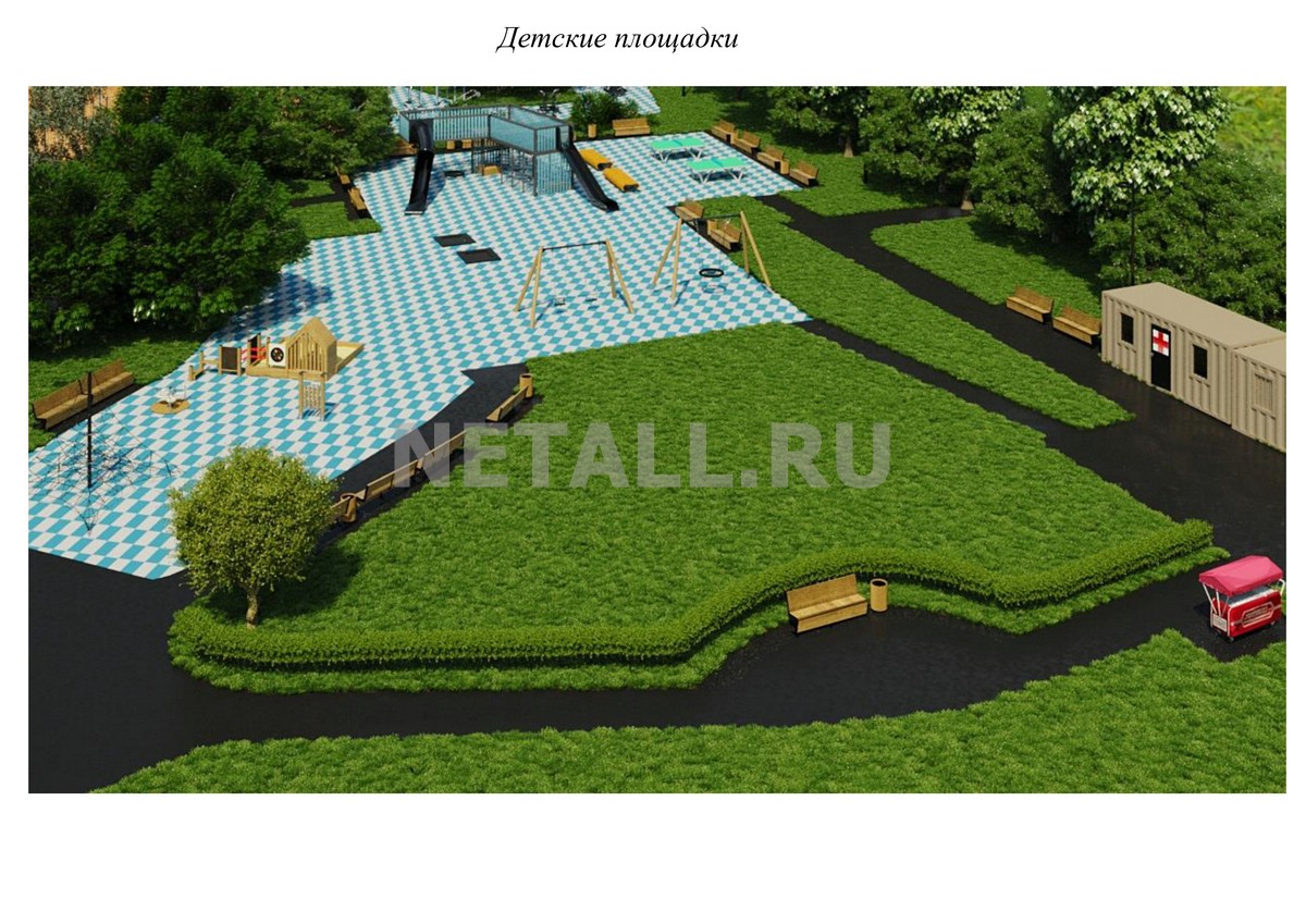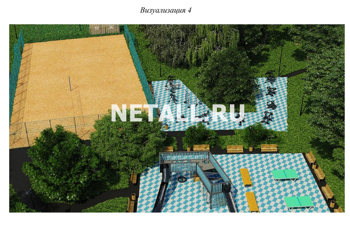 Оборудование детских площадок собираются заменить на более современное. На месте футбольного поля устроят спортивную площадку с несколькими зонами, предполагающими возможность игры в волейбол, мини-футбол и настольный теннис. Большая часть спортивной зоны получит песчаное покрытие. Также планируется расширить зону тренажеров.