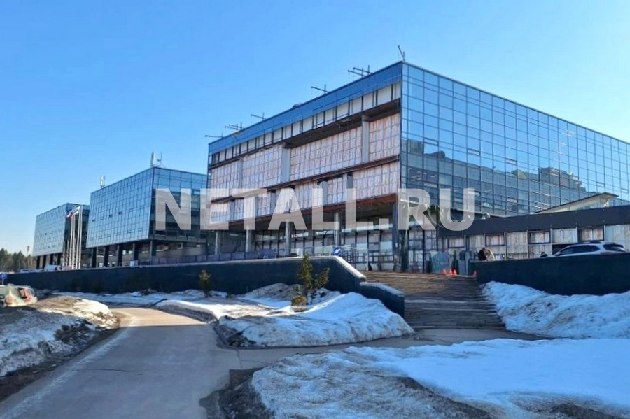 В технопарке «Элма», пострадавшем после атаки беспилотника в конце прошлой весны, ведутся работы по остеклению фасада.