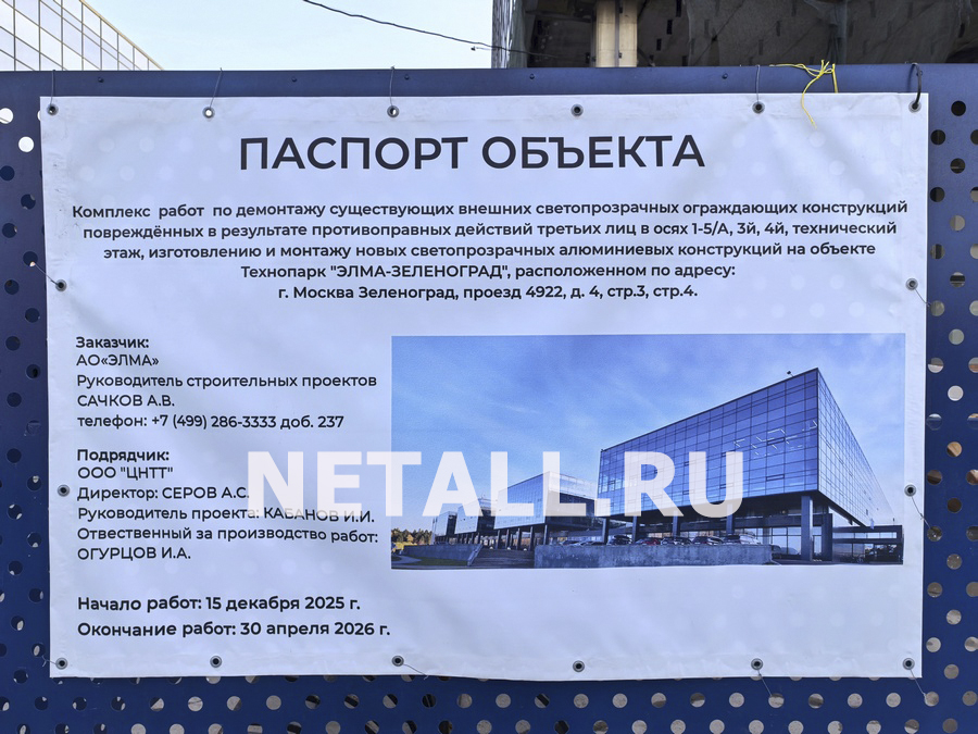 Работы стартовали еще несколько месяцев назад, но в последние дни стали более заметными и масштабными, сообщают корреспонденты Инфопортала. В одном из корпусов «Элмы» рабочие разбирают с целью последующей замены остекления практически весь фасад, а не только его поврежденные секции. Согласно данным на информационном баннере, вывешенном на ограждении, завершить работы планируется до конца апреля текущего года.