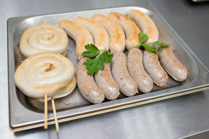 Отдельного упоминания в описании мясного ассортимента «Кнакера» достойны, конечно, фирменные сосиски, сардельки и колбаски. Нюрнбергские, мюнхенские, регенсбургеры — всего несколько десятков наименований. Поскольку производство в компании изначально строилось по немецким технологиям, неудивительно, что «выпуск» этих продуктов был налажен в первую очередь. Приятным дополнением к немецким сосискам станет продающееся в магазине баварское пиво, которое варят специально для «Кнакера».