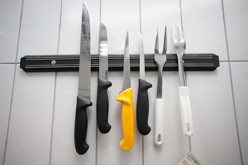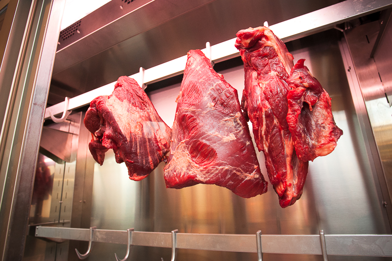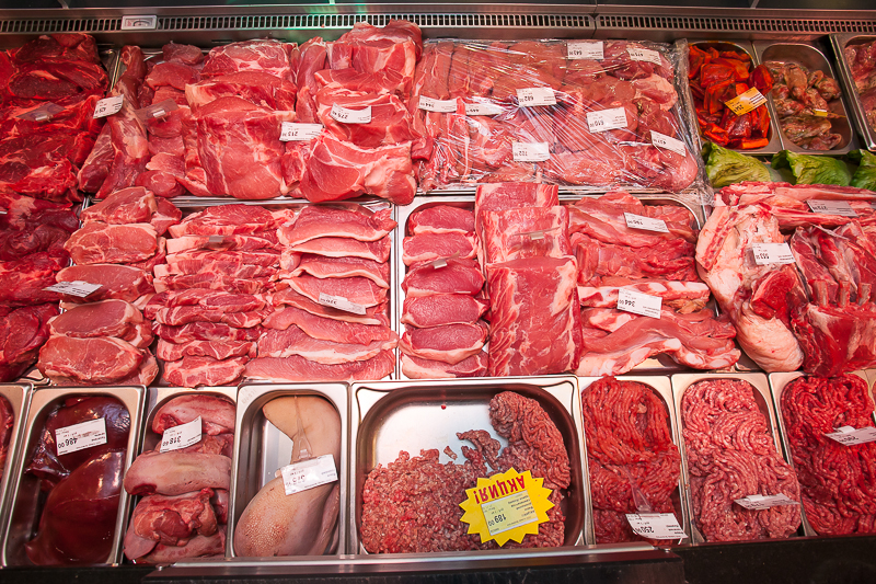 Охлажденное мясо поступает с комбината в магазин так называемыми мышечным кусками. Поэтому в разделочном цехе его не столько разделывают, сколько «подчищают», срезая тонкую пленку, чтобы выложить на витрину или отправить на кухню. Очистки отсылают обратно на комбинат на переработку — из них еще вполне может получиться отличный корм для животных. При необходимости здесь же куски мяса с помощью специальной машины «убирают» в вакуумную упаковку, что позволит покупателю взять его с собой в длительное путешествие, не переживая, что продукт испортится в дороге.
