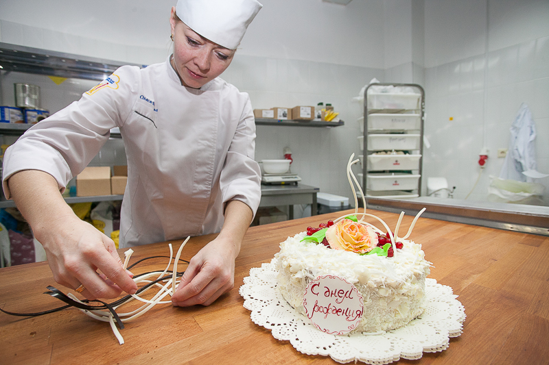 Помимо небольших десертов в «Кнакере» готовят и тематические торты на заказ. Во время нашего визита Олеся как раз заканчивала работу над одним из таких произведений искусства. Правда, заказывать торты надо как минимум за четыре дня, предупреждают в магазине.